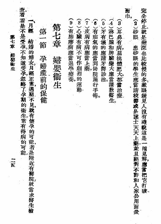 内分:引言、环境卫生、膳食的卫生、个人卫生、公共卫生、学校卫生、妇婴卫生及传染病的预防等8章