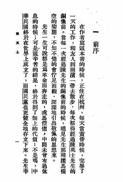 介绍陈其美的一生。分为9部分:前序、幼年时代、在一家当铺里做学徒、留学归国后的革命运动、辛亥革命及沪军都督时代的英士先生、二次革命时代的英士先生、组织中华革命党、肇和战役、英士先生的被害